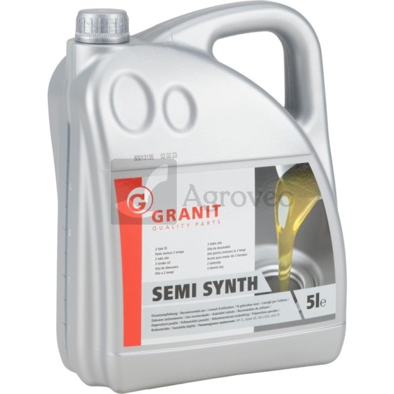 Opis: Półsyntetyczny olej GRANIT to bardzo wysokiej jakości, samomieszający się olej do silników dwusuwowych, oparty na bardzo dobrych mineralnych i syntetycznych olejach bazowych, zmieszany z wyjątkowo skutecznymi dodatkami do dwusuwów.